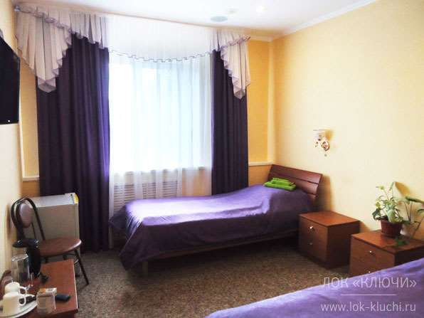 Площадь номера - 18 кв.м. 2 осн. места. 1 доп. место. Мебель: вешалка, зеркало, кресло-кровать, кровати односпальные (2), прикроватные тумбочки, столик журнальный, стулья, шкаф. Оборудование: набор посуды, телевизор, холодильник. Санузел: с ванной или душевой кабиной, туалетные принадлежности, фен. Сервис: Wi-Fi бесплатно, смена полотенец, смена постельного белья, уборка номера.